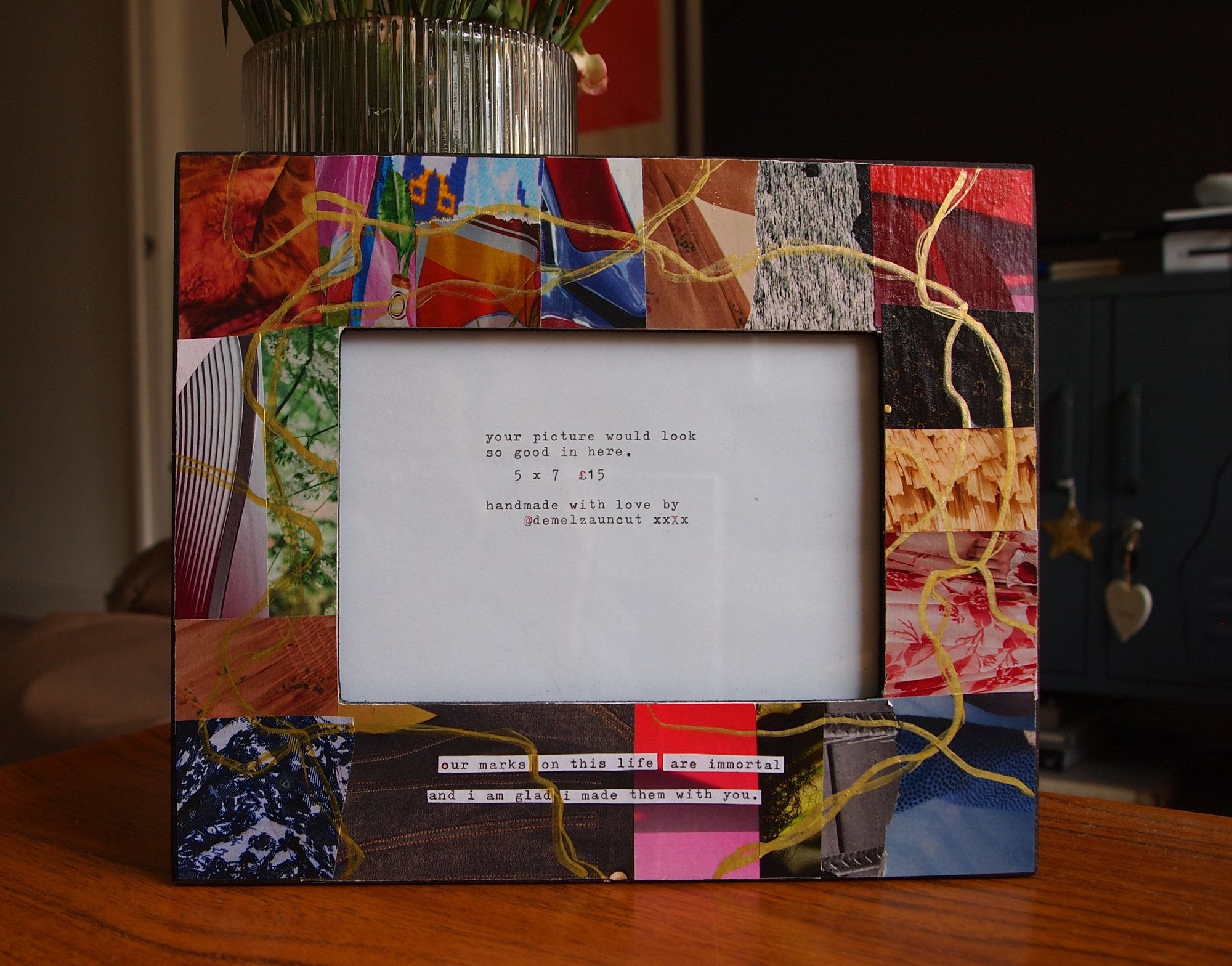 The poem on this frame reads: ‘our marks on this life are immortal and i am glad i made them with you’.